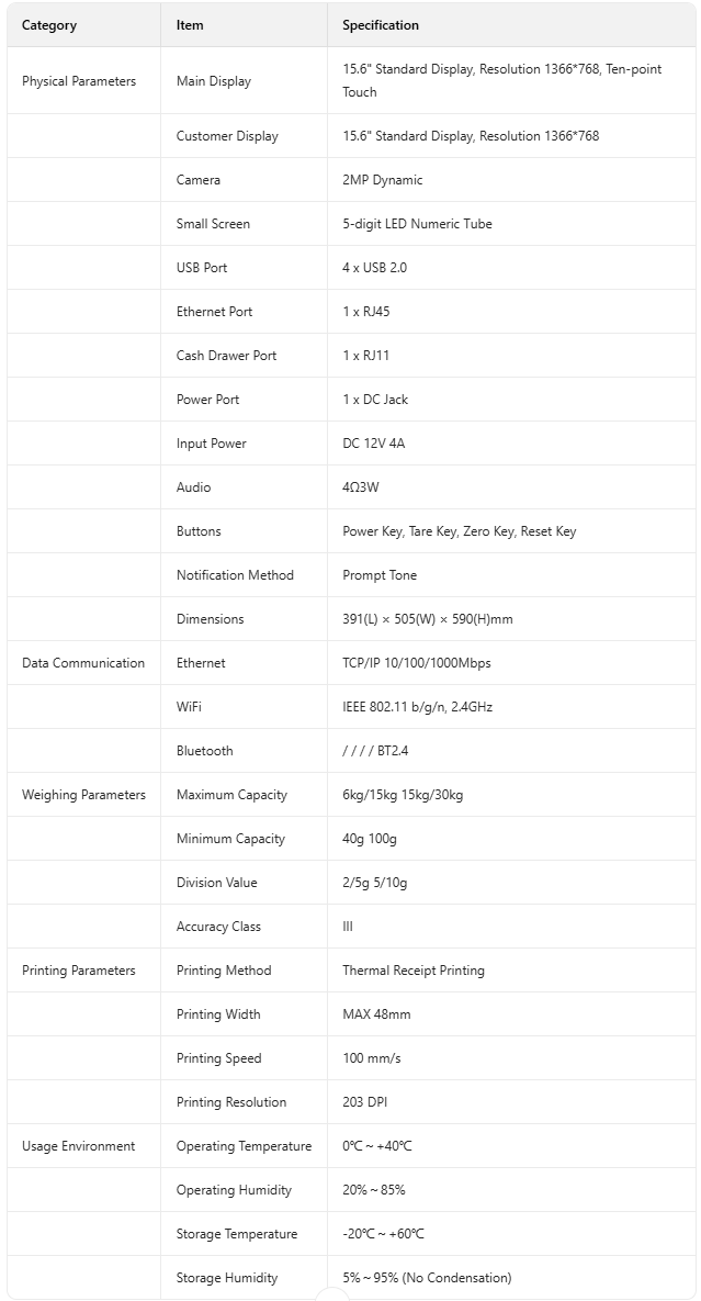 RT AURORA E1 PRO-AI AI Cashier Scale